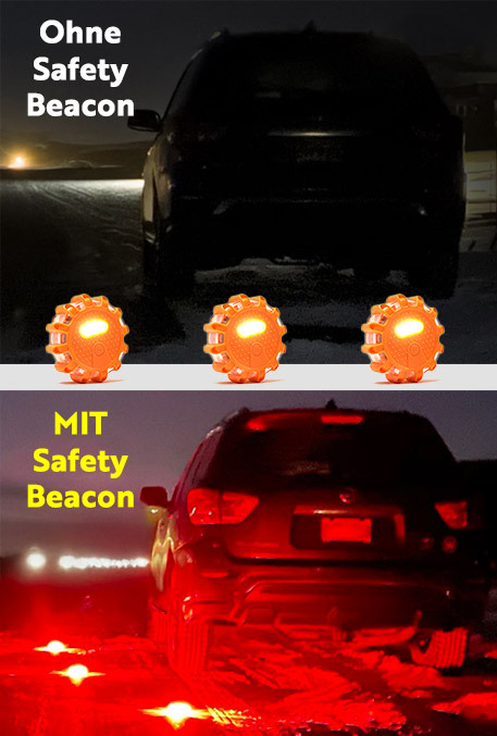 “Ich hatte gegen 23 Uhr eine Reifenpanne auf einer dunklen Nebenstraße und war ehrlich gesagt nervös, als ich dort saß und auf Hilfe wartete. Ich schaltete die Safety Beacon ein und platzierte sie hinter meinem Auto – innerhalb von Sekunden verlangsamten die vorbeifahrenden Autos und machten mir Platz. Ich war so beruhigt, weil ich wusste, dass ich sichtbar war und nicht Gefahr lief, angefahren zu werden. Dieses kleine Gerät hat mir in einer stressigen Situation ein viel sichereres Gefühl gegeben.